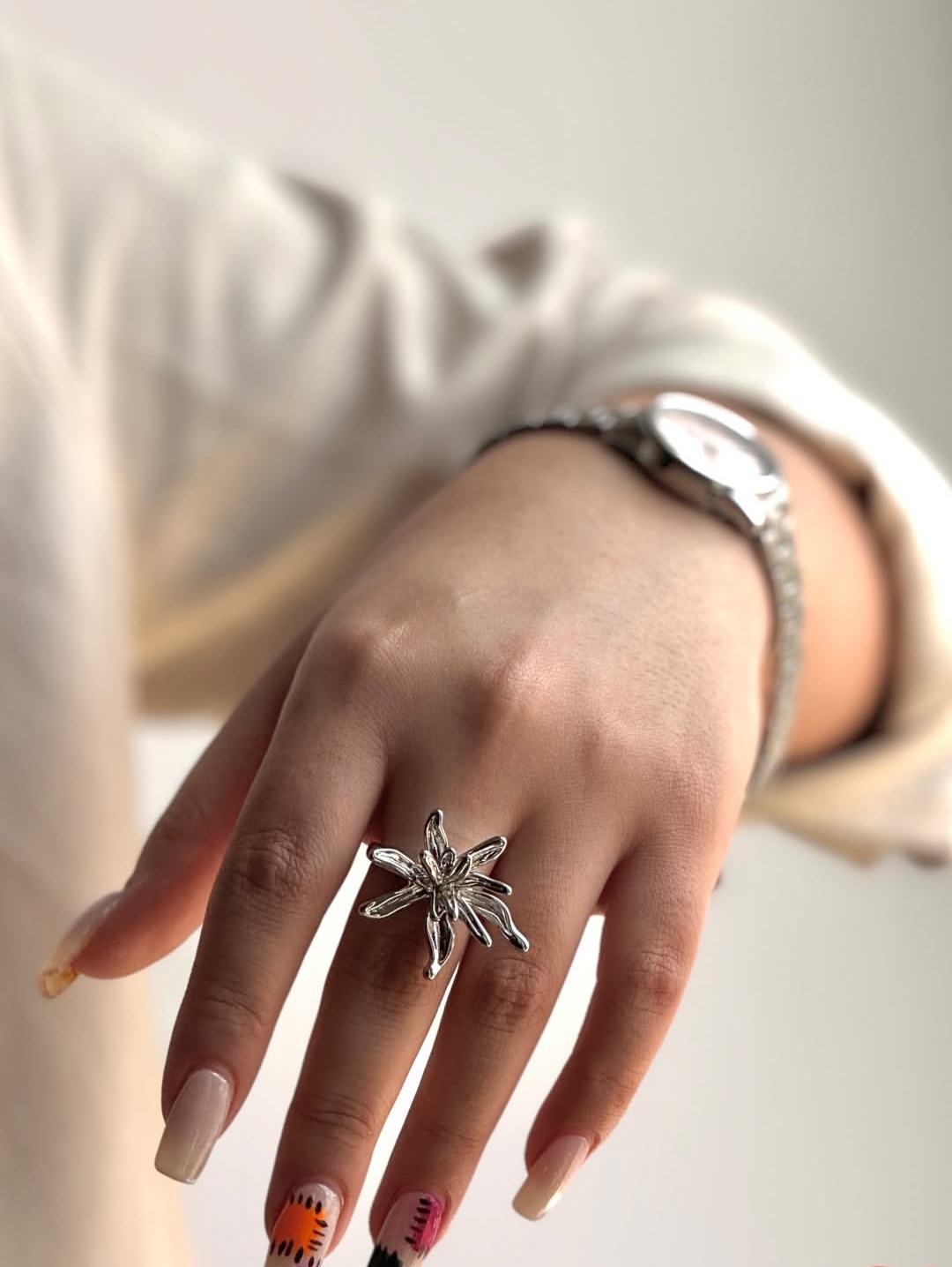 انگشتر خاص زنانه طرح گل.فری سایز.کیفیت و ماندگاری رنگ عالی.ضد حساسیت.رنگ ثابت.برای ماندگاری بیشتر دور از مواد شوینده باشد..