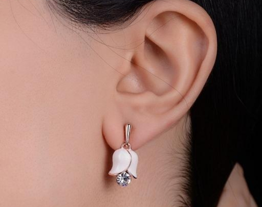گوشواره طرح گل لاله نگین دار استیل