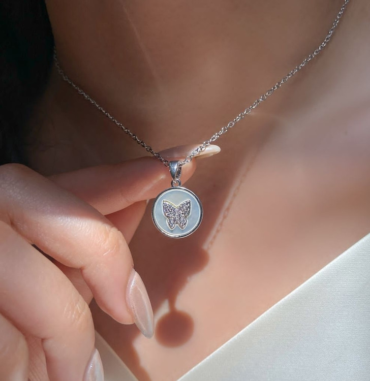 گردنبند پروانه سیلور استیل.کیفیت عالی.ضد حساسیت.رنگ ثابت.همراه با زنجیر.برای ماندگاری بیشتر دور از مواد شوینده باشد..